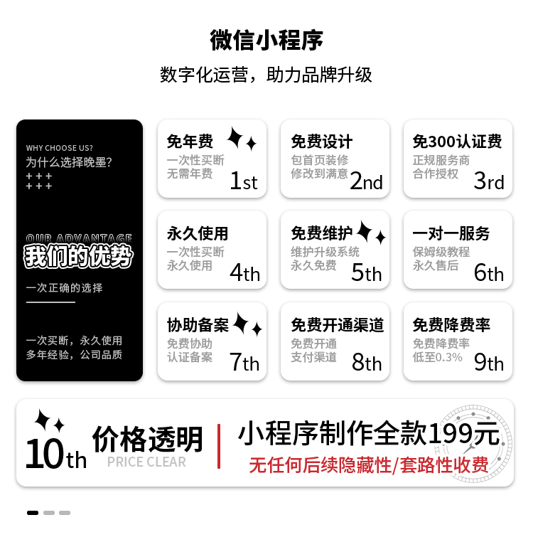 定制小程序 专业开发 精美设计 兼容稳定 安全可靠 免费备案 优质服务